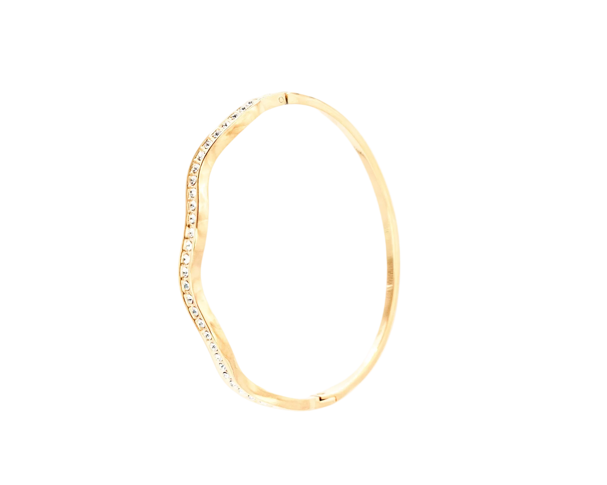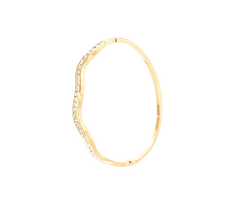 Designed with a unique, undulating silhouette, this piece is meticulously lined with a row of shimmering crystals that capture the light from every angle. Its slender profile and polished gold finish make it an ideal choice for stacking with other favorites or wearing solo for a sophisticated, understated look.