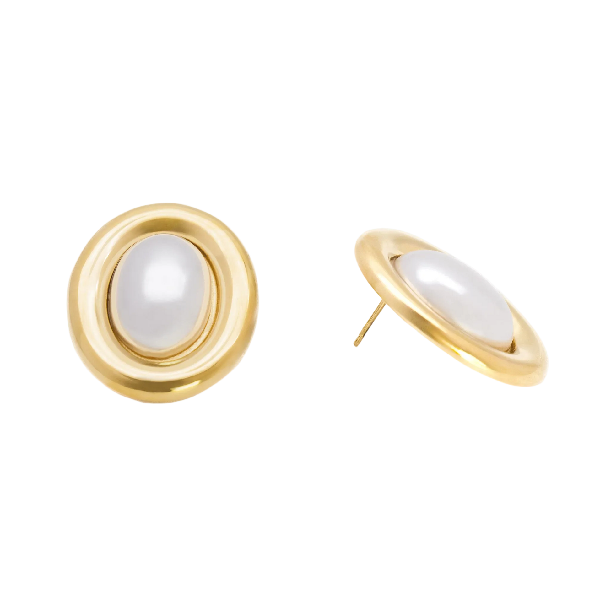 Key Features: Polished gold-tone finish, Oval silhouette, Inset faux pearl, Waterproof, Hypoallergenic