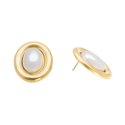 Add a touch of timeless elegance to your look with these Vintage-Inspired Oval Pearl Stud Earrings. These striking earrings feature a luminous, oversized faux pearl center cradled within a thick, highly polished gold-tone frame. The bold, sculptural oval design offers a sophisticated aesthetic that blends mid-century charm with modern minimalism, making them a versatile statement piece for both professional attire and evening wear.