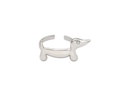 Celebrate your favorite long-bodied companion with this sleek and whimsical Dachshund Wrap Ring. Designed with a modern, polished finish, this "sausage dog" gracefully hugs your finger, featuring a subtle sparkling stone for an eye that adds just the right amount of shimmer.