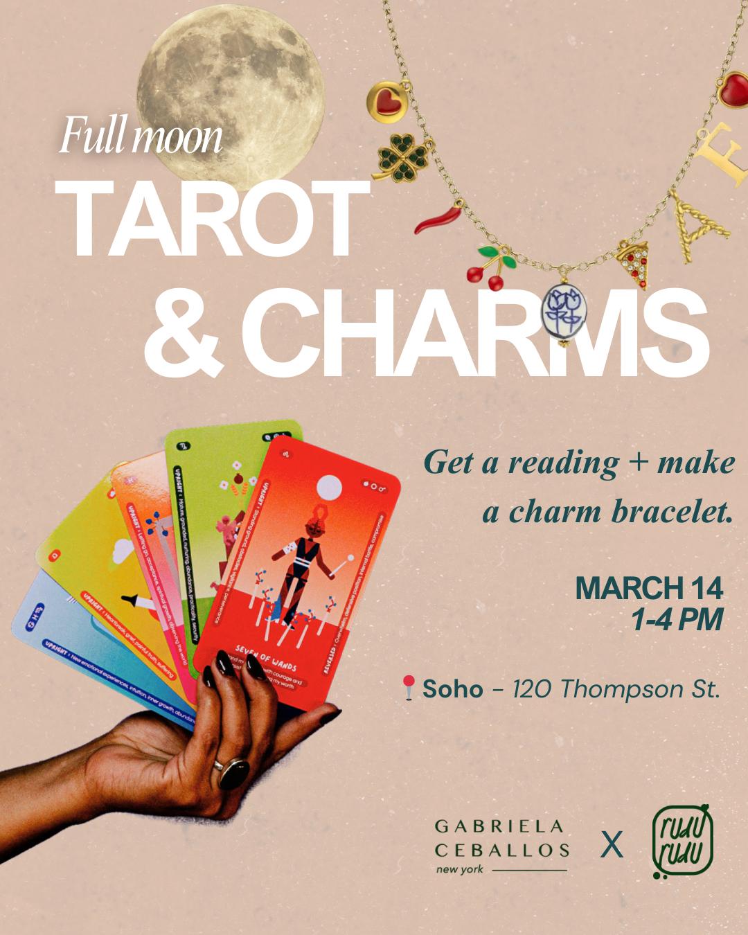 Join us for a Tarot & Charms experience at the Charm Bar. Get a tarot reading and create your own bracelet or necklace inspired by your cards.