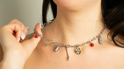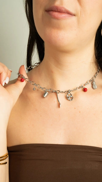 For the girl who knows the best brunch spots and lives for Sunday mornings. Fresh, eclectic, and ready for a city stroll, this piece captures the joy of the little things. This foodie-inspired collection hangs on a delicate 16-inch silver chain. The stack includes the essential Silver Coffee Cup (morning fuel), the ready-to-eat Silver Fork, a crisp Silver Apple, the salty twist of a Silver Pretzel, and a tropical Silver Pineapple (for sweet vibes).